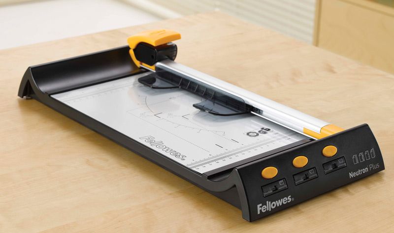 - Має безпечну для використання унікальну касету Fellowes SafeCut™ з лезами із нержавіючої сталі, леза весь час перебувають в кожусі касети і висуваються лише під час різання