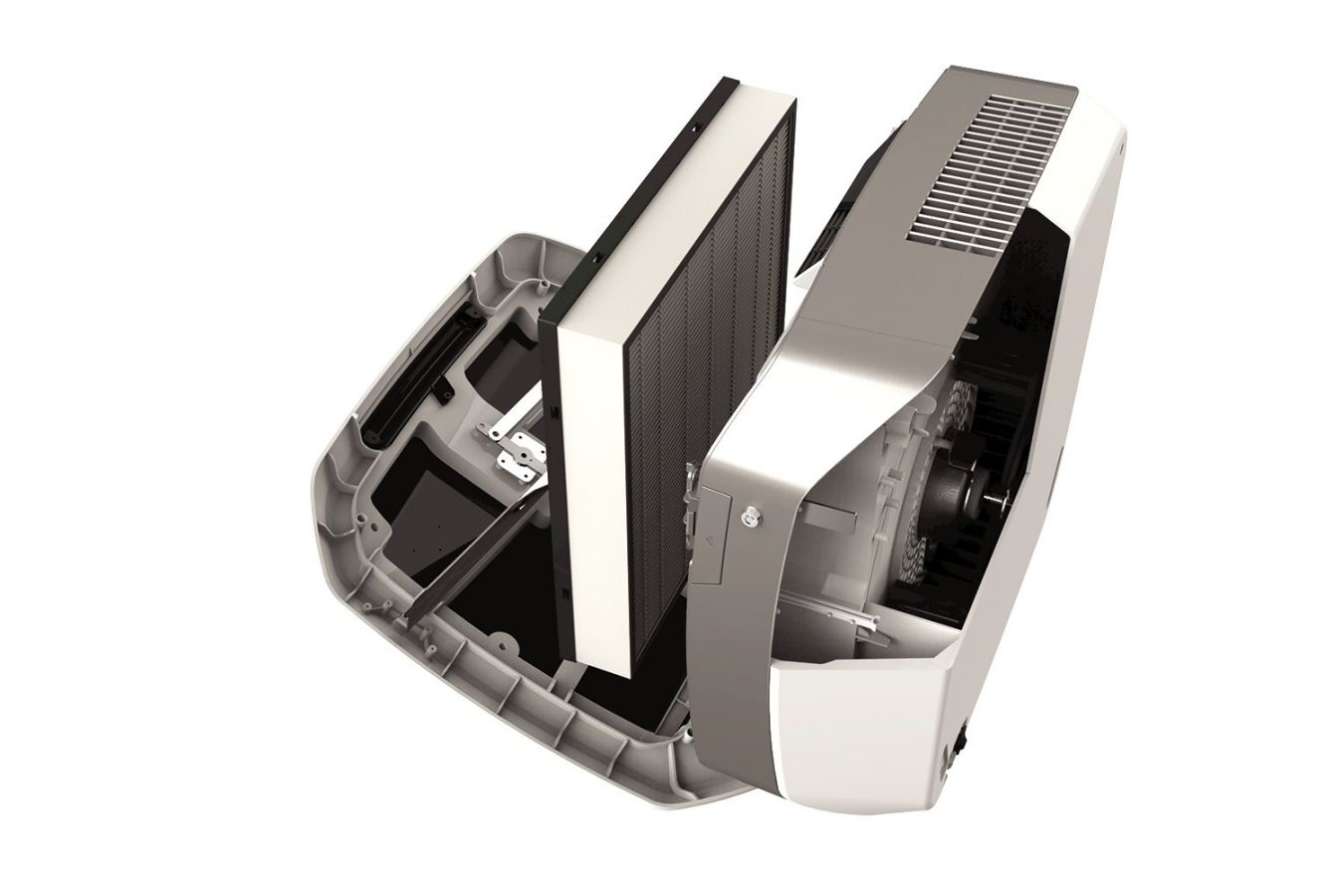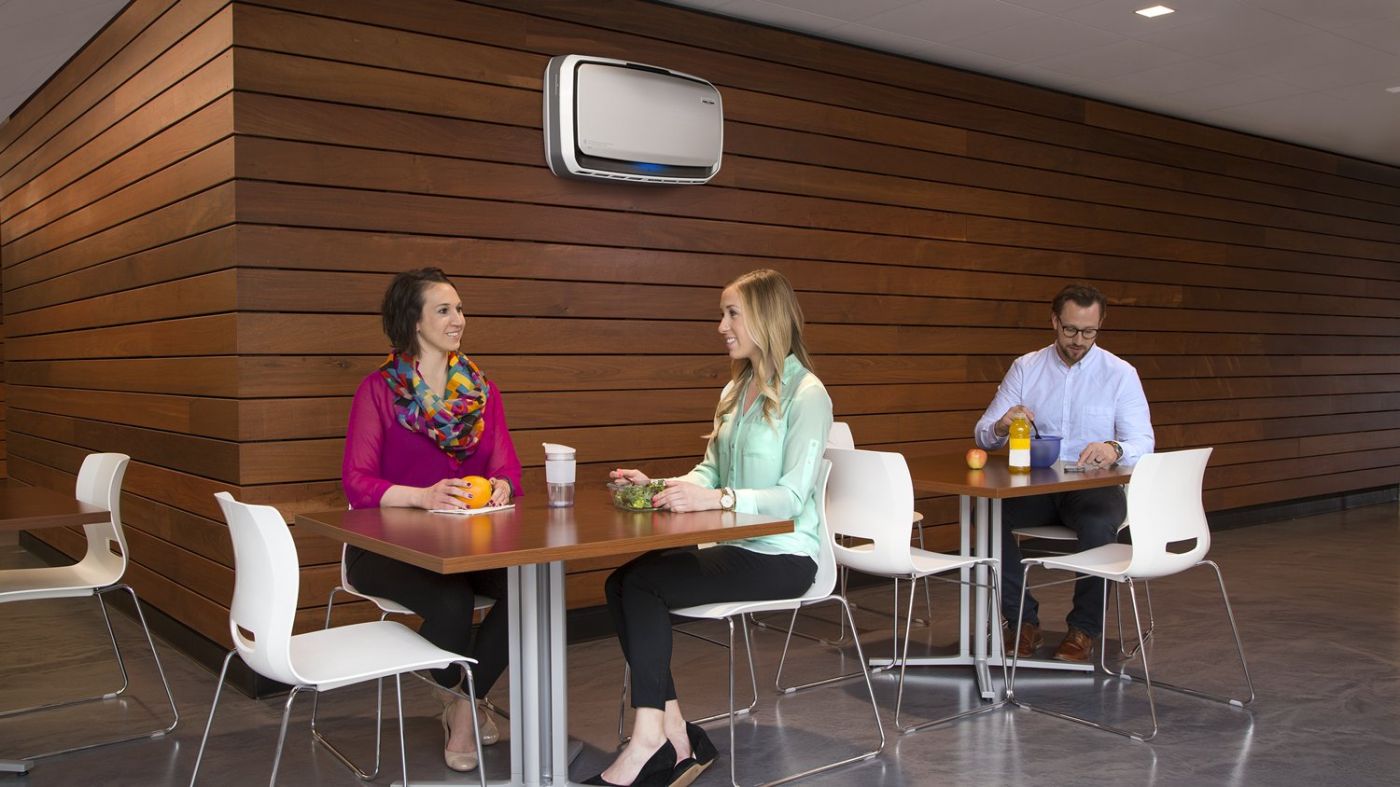 - Пристрій сучасний та вишуканий, ідеально вписується в різні архітектурні стилі, легко монтується на різні типи стін, завдяки чому гарантує чисте повітря в місцях, де воно найбільш потрібне.
