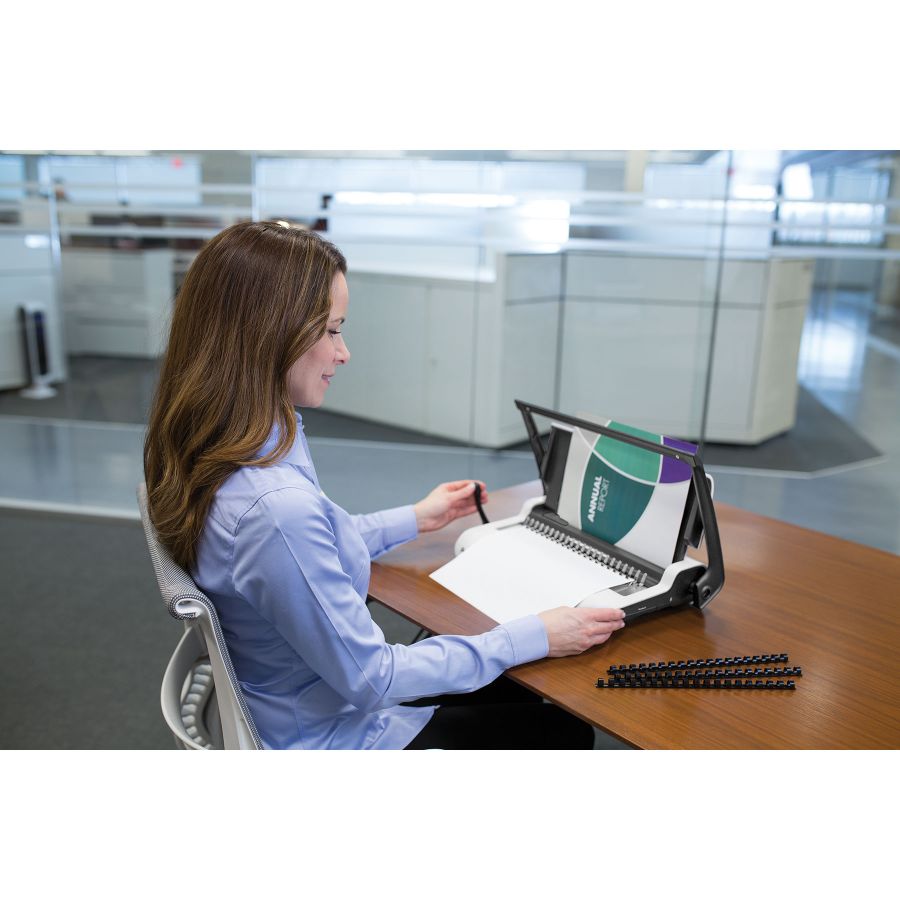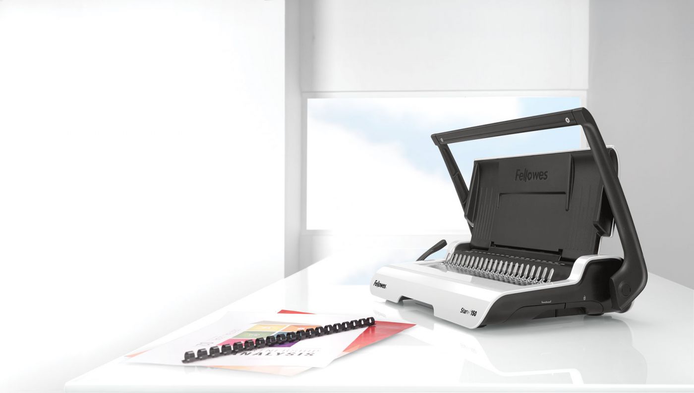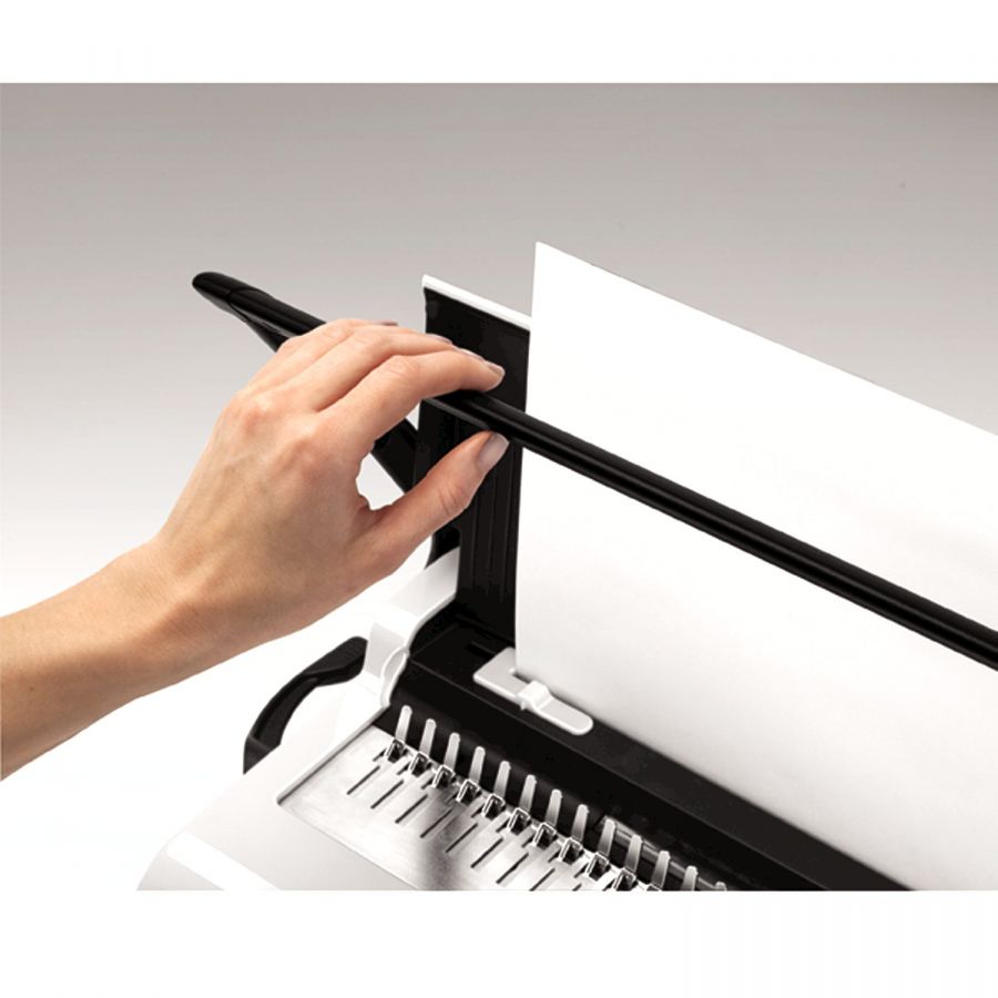 - Перфорує за один раз до 15 аркушів A4 (80 г), може брошурувати документи товщиною до 150 аркушів, макс. діаметр корінця 19 мм