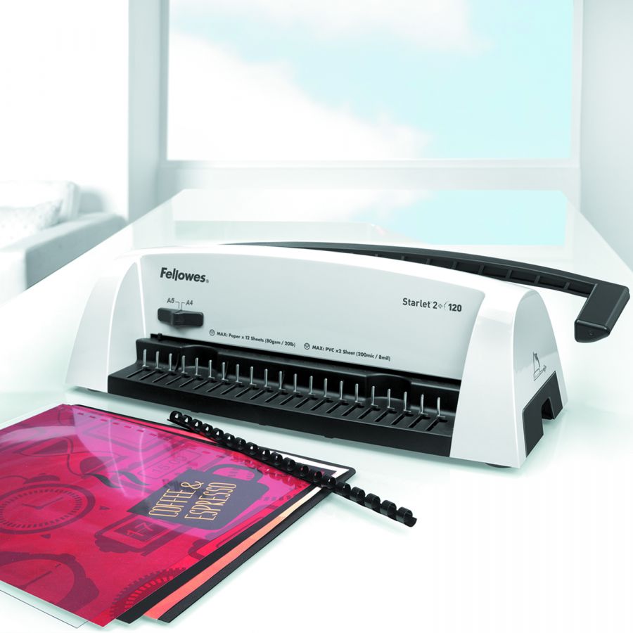 • Перфорує за один раз до 12 аркушів A4 (80 г), може брошурувати документи товщиною до 120 аркушів, макс. діаметр корінця 16 мм