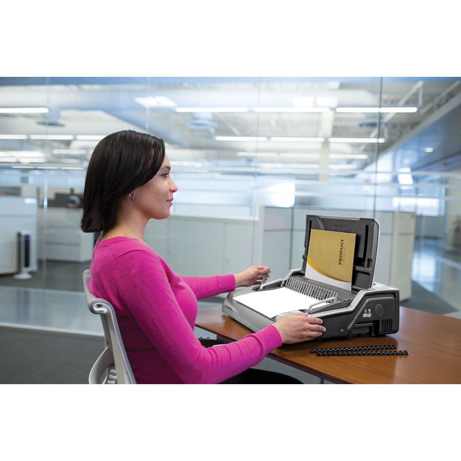 • Перфорує за один раз до 28 аркушів A4 (80 г), може брошурувати документи товщиною до 510 аркушів, макс. діаметр корінця 51 мм