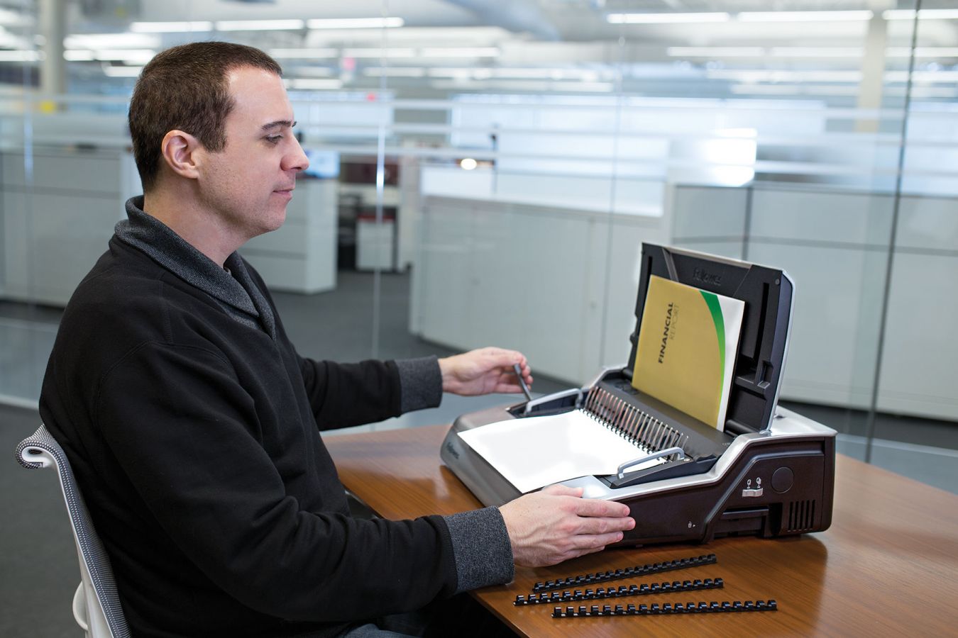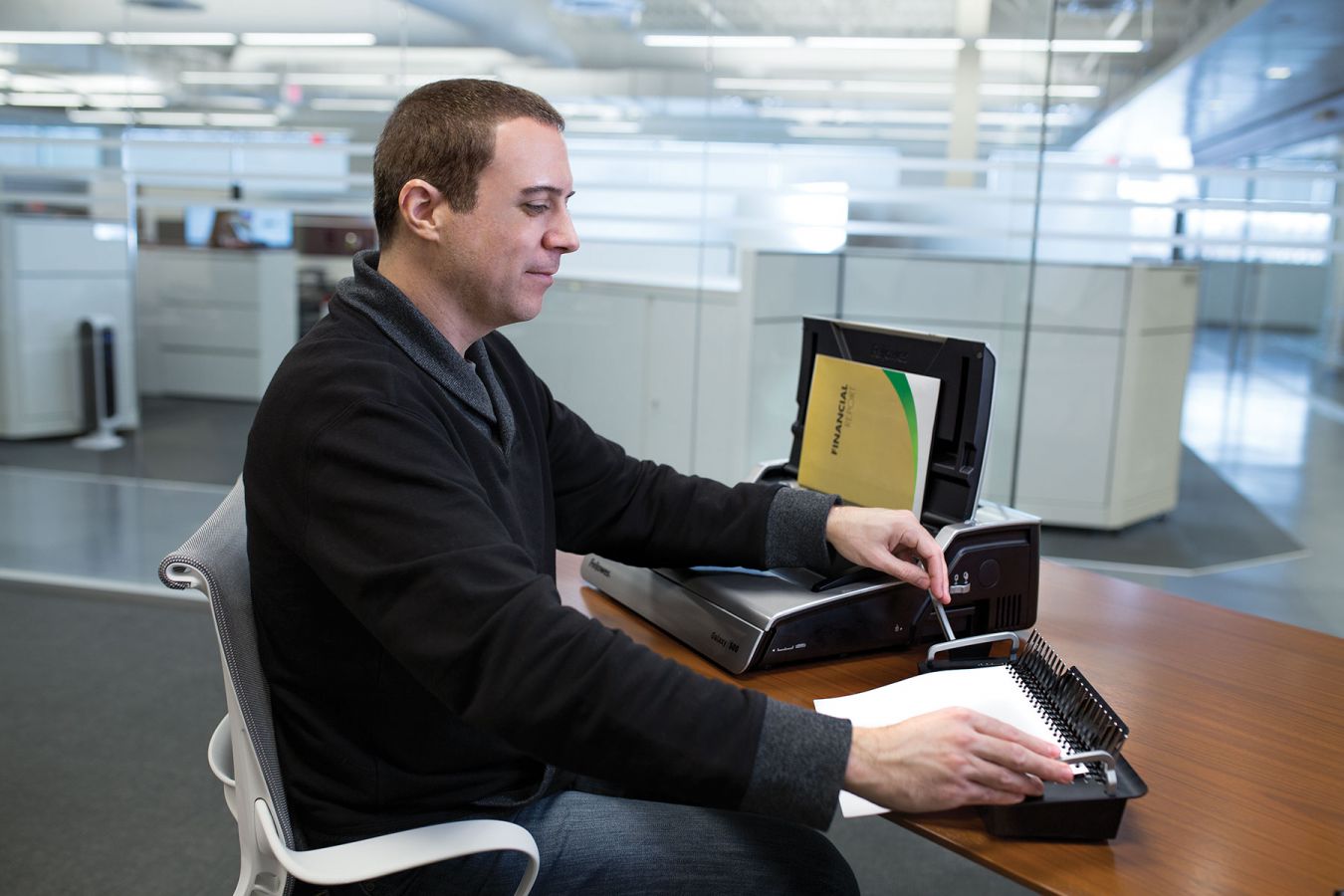 • Швидке брошурування великої кількості документів- System Satellite®. Знімна касета з брошурувальною платформою дозволяє працювати двом особам одночасно.