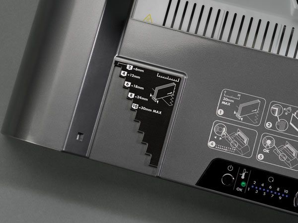 - Максимальна товщина брошурованого документа/корінця обкладинки - 30 мм